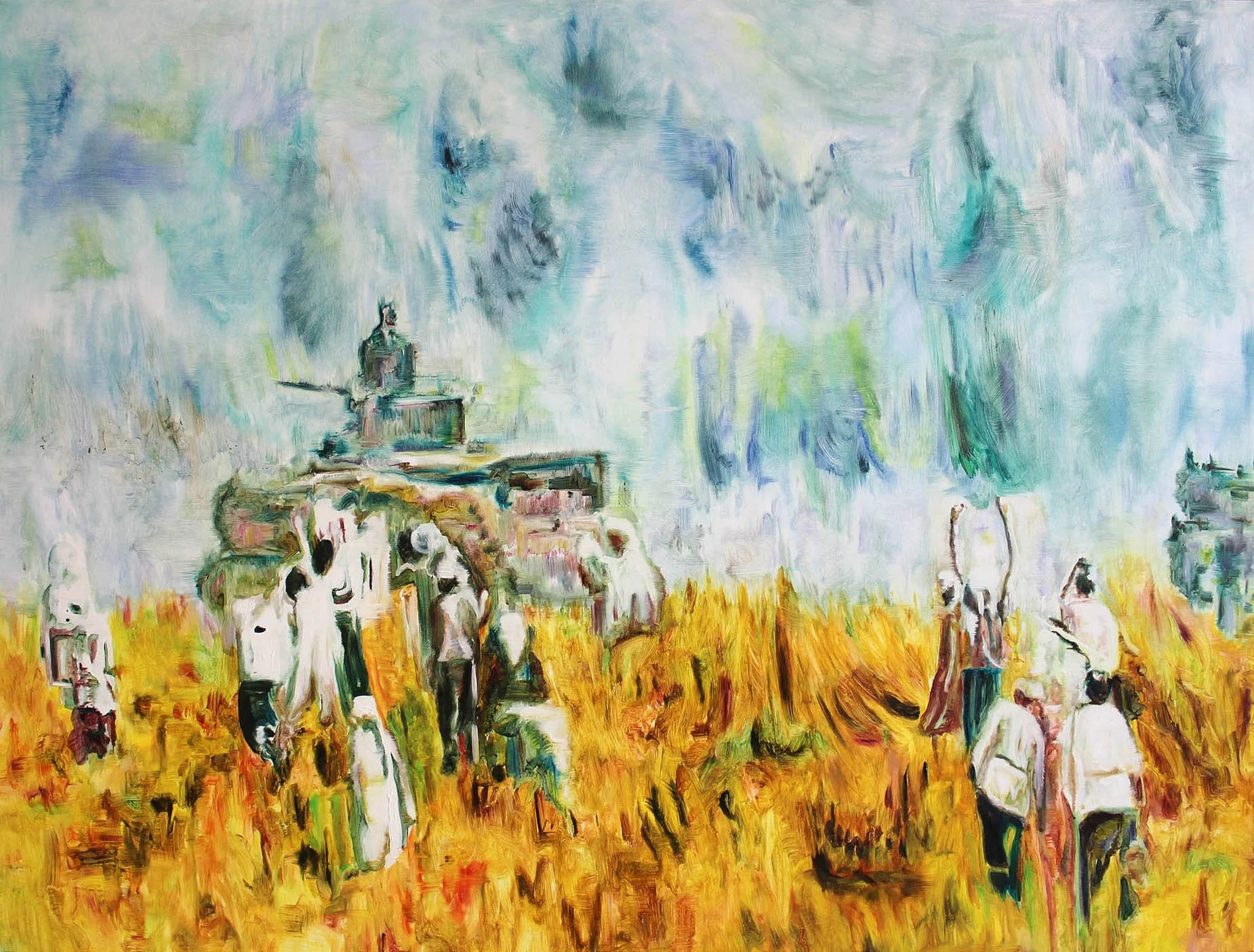 Iām afraid that history is itself burning in these fires, oil on canvas, 200 x 250 cm, 2025